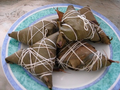 家はね、嫂子とか義妹の婆婆が粽を作ってくれるのを貰うのだけど、義母は、糸じゃなくてその葉を洗って干して嫂子にお返ししようとして、真っ向否定されてた。