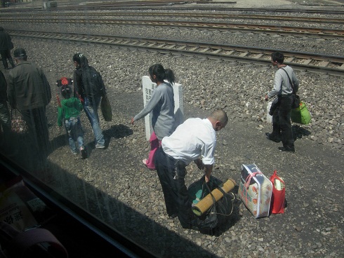 民工のおっちゃんが荷物の上に座らせてくれました。 あぁ景色のよいところにいきたいです。 人民ともみくちゃでもちょっとは我慢します。