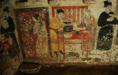 北京から列車に乗って3時間、「宣化站」下車。その後はタクシーで「下八里村辽代壁画墓群」へ。運ちゃんにどのくらいかかるんですかと聞いたら「十数分」と言ったんだけど、運ちゃんは行ったことがなくて、途中迷ってたな。