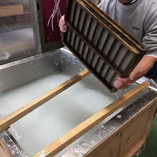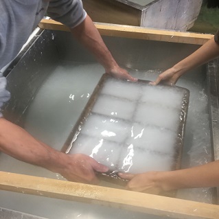 池袋から東武東上線に乗って1時間くらいかな。「小川町」で降りて、「小川パークヒル」行きのバスに乗って10分。「伝統工芸会館前」で下車徒歩1分と予習したが、降りてもどこだかわからない。それほどのどかな一帯。 歩いていたオバちゃんに尋ねて、前進したら1分で本当にあった。 300円の入館料を払う。小さなスペースに複数の展覧会を開催中。和紙工房へ。 体験はハガキ8枚が900円で一番安く、ハガキ・しおり・色紙と大きさがさまざまなのもあって、1050円まで。その場で作って、送料を別途払い、後日郵送してもらう。 体験者がやるのは、まずはこれ。娘を撮影した。 和紙の原料(楮など)を溶かした液体が入っている「すき舟」(水槽)から「すき桁」(枠)に、原料の液体を何度か流し込み、すき簀の上に均等に繊維が行きわたるように繰り返し揺らす。 職人と一緒に持つので、ちゃんと均等になる。あとはすべてやってくれる。 水を切る。 開く。 台に置く。 体験者が葉や花などでレイアウト。注意するのは、ブツを重ねないこと。端を5ミリは空けること。ハガキに字を書くなら、白い部分を残すこと。 これがワシの8枚。上が現場で置いたところ。下が送られてきた方。 3日くらいで届いた。 紙作りそのものに関しては掬っただけ。体験というほどではないと感じ、物足りなさを感じた。まあ、水を切るのでさえ十分じゃないと、ちゃんと紙にならないから、プロにやってもらったほうがいんだろうけど。 でも、どんなところか行ってみたかった。お店には和紙製品もいろいろあって、ワシは満足。 http://www.saitamacraft.com/ ホームページ。 東京には「小津和紙」というお店に紙漉き体験コーナーがある。以前行こうとしたら、長いことお休みだった。そっちもいつか行ってみたい。 <紙漉き体験以外に続く> PR |