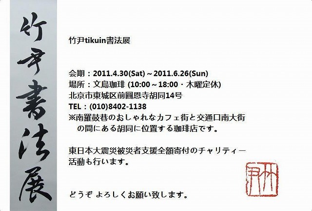 まず初めに北京で書道留学中のLEMOちゃんが個展を開くので、是非行ってみてちょーだい。