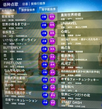 微博にカラオケのことを書いたら、中国人のコメントが「去过三里屯的台北纯K,在法国念过书的朋友推荐的,外语歌库超极全」。結構揃ってるようだ。