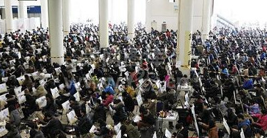 たとえば今年、北京の場合。 6月7日 上午9:00—11:30 语文 下午3:00—5:00 数学(文/理) 6月8日 上午9:00—11:30 文科综合/理科综合 下午3:00—5:00 外语 文系も理系も国数英は必須。各150点。文系は歴史、地理、政治。理系は生物、物理、化学。各100点で750点満点。 ダンナの友人の子が数年前、中央美術学院附属中学(高校)を受けるのに、「来年から書道が試験科目に」ということで、焦っていた。息子に「書道はないの?」と聞いたら、中国画専攻でなければないと。 中央美院院系一共七个学院,分别考试,考试内容不同。 这七个学院分别是造型学院、国画学院、设计学院、建筑学院、人文学院,城市设计学院,还有今年新开设的实验艺术学院。 息子は「造形」を受けるので、デッサンと水彩画の実技(?)。よく友人に「予め描いたのを提出?」と聞かれるけど、その場で描くに決まっている。こんな不正の多い国。 美術学院は英語のテストがなくなったというニュースを見た気がした。絵はものすごく上手なのに、英語ができないために落ちると、せっかくの才能が埋もれてしまうから。息子に確認すると、そうではなかった。750点満点で、去年は420点が合格ライン。英語は70点以上をとっていないと、6科目の合計が420を越えていても不合格。国語は80点以上という規定がある。それが今年の受験生から、英語の点数は問わず、合計が合格ラインに達していればいい。国語は従来どおり80点以上必要。 英語は150点満点だ。70点?半分以下って、え?国語も80点?え?この広い中国の一番レベルの高い美大がその程度?え?チトびっくりしたな。 美大は実技試験が3月にある。まずはそれに合格して、6月に高考。 これ北京じゃないけど。 描いた絵を選考している会場の写真はここから。 写真見ると、緊張するな。私がするのは体調管理だけか。 |