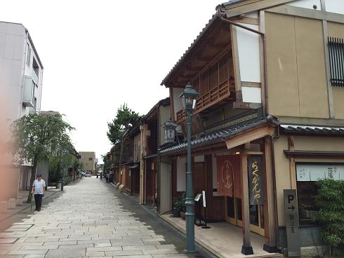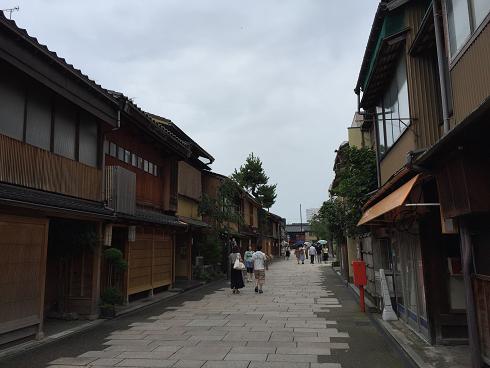 上の座敷にあがる。畳。いい。 これとっくに微博に載せてて、中国人に「这家餐馆的师傅好厉害,饭菜做得就像艺术品呀」とコメントをもらった。日本人の私は何も考えないで食べてたけど、料亭じゃない普通の飲み屋でも、中国人が見たら「芸術品」。日本人のキメの細かさをこのコメントで再認識した。 翌日、ダンナが「昨日行ったから、行かない」。え?でも中に入ってないよ。「もういい」。いやいや、暗くてよく見えてないよね。「今日は別のところへ行こう!」。これ日本人の家族旅行なら行くよね?絶対絶対行くよね。いいわよ、来世でねって感じだわ。 泊まったホテルはビジネスホテルだから、サラリーマンばっかり。朝食は券もなくて、ロビーで食べ放題。え?これ外から入ってもバレない?食事は簡単。種類は少ない。でもそれで十分だ。 雨が降ってて、傘を二つ買った。日本での買い物リストに折りたたみ傘があったから。中国で売っている傘ってとても重い。 バスに乗り、お寺群へ。この後<竹の筆を買ってみるin金沢>へ続く。 妙立寺(忍者寺)へ向かうわてら一行。うちのダンナ、「我有的是钱」(金はたくさんある)と頻繁に言う割には、ときどきケチだ。「お寺?入場料とるなら行かない」とか。「予約要る?メンドくさいから行かない」とも。お寺はどこも同じようなものだから、行かなくてもいいとも考える人だ。でも、ここは手の凝った仕掛けがいろいろある。中国にはないだろうし、珍しいから、子ども達にも体験させたい。直接行って、30分後に入れるというので、入った(中は撮影禁止)。