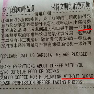兼六園に怒り、ダンナに怒り、昨日はカフェに怒った。コーヒー頼んで、「ミルクと砂糖をください」と言ったら、ミルクしかくれない。「砂糖をください」。「ありません」。私本気で自分の発音[táng]が通じていないのかと思って、「砂糖ください」ともう一度言うと、「ありません」。え?あ、そうなんだ。「砂糖出さない協会」なんだ。ケーキあるから、砂糖はあるけど、客に出さないんだ。席に着いて、レシート見たら、明記されている。