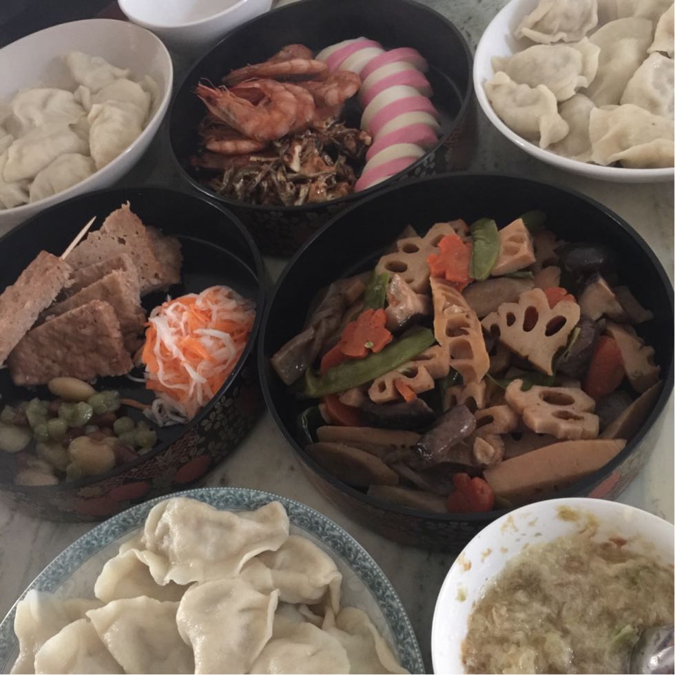 クリスマスに作った。 これを微博に載せたら、中国人が日本語で「中華風だよ」と書くので、「他人のを見て思う場合は中華風だねと書くべきだ」と教えた。そしたら、「『ね』と『よ』と『よね』の違いはなんですか」って。今、日本語教師に確認しているところだ。それを中国語にして、それが正しいか中国人に聞いて。先は長いな。 正月。初めてじいさん、ばあさんに見せる用の(?)おせち料理を作った。かまぼこだけ、北京で輸入品を買ったけど、あとはわざわざ日系スーパーで出来た物を買ってなんていうことをしなかった。 有頭えびの艶煮含め煮/松風焼き/ごまめ/筑前煮/紅白なます ばあさんが同時に餃子を作ったの。だから雑煮は夜にした。ご飯も炊いて、おせちの残りと、ばあさんが炒め物を作った。 中国人は(我が家は?)一人当たりお碗2個を使わない。日本人ならご飯茶碗とお椀に雑煮なんだけど、アトリエに漆のお椀がない。そこで私は考えた。先に少量の雑煮をご飯茶碗についでしまう。そして食べ終わったら、白いご飯を食べる。お茶碗は一つでいい。 ところがばあさんが「食べたい方をつげばいい」と主張。ダンナなんか先に絶対お米の人。遥か昔、初めてちゃんと洋食を食べたとき、先にスープが出たのを見て、「西洋人はいきなり帰らせたいのか!」と怒ったほどだ。中華ではスープは最後だから。で、この時しょうがないから、中国人の皆さんにご飯をついで、私や娘は雑煮を先に食べて……。でも、鍋ごとテーブルに置いて、最後にお雑煮を食べる頃には冷えてるんだよね。私の正月気分を見事に粉砕よ。一人でイライラしてた。はいはい、私が悪いんですよー。国際結婚した私が悪いんですよーだ!