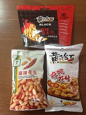 みどり:我在京客隆买了Calbee杭州生产的虾条,味道不如日本的かっぱえびせん。 進さん:据说不少中国产的国外品牌的食品都没有国外的好吃,比如pocky,好丽友什么的,哎 みどり:我也觉得奇怪pocky,还有日清的杯面在中国为什么不能做好吃。 進さん:那我想知道中国有什么做的比国外好吃的东西吗? みどり:我2月份回国准备见朋友,有一个朋友想让我帮她买“黄飞红”花生。这个“黄飞红”花生非常受欢迎,不少日本人很喜欢。 進さん:哦哦,我之前在你微博里看到过,不过我好像没吃过,下回可以尝尝 進さん:我是没对比过,因为比如去国外旅游,看到同样牌子的东西,想到反正国内也有,就没买过,后来有一次听一起从韩国玩儿回来的人说同样的东西,韩国的好丽友比较好吃,我才意识到这个问题。不过的确听说日本的不少东西要比中国的好吃,不管是中国也有的还是没有的。 みどり:超市有卖的。但是在日本卖的花生里不会有花椒,花椒是中国特色,有些日本人很爱吃。另外,我已经买好了几袋麻婆豆腐调料。日本的麻婆豆腐不够辣,比较甜,没有花椒(中国的花椒很重要啊!)。 進さん:哇!原来如此!花椒是挺香的,椒盐儿啊,麻油什么的,都很提味儿的。说到花生,我记得原来吃过芥末花生,但是我不是特别爱吃芥末,所以吃一颗感受一下那种撞脑的感觉就够了。不知道日本有没有这个。 進さん:我看一些排行榜说日本人喜欢的中国菜几乎总有麻婆豆腐,日本的麻婆豆腐那么好吃吗?在我印象里我吃过的都是辣的,好像没有甜的感觉。 みどり:我也爱吃日本的麻婆豆腐。日本的中餐味道适合日本人吃,已经日本化了,你们吃的话感觉肯定不地道。中国的麻婆豆腐又辣又麻,日本的麻婆豆腐不麻,就是少花椒。日本人吃了中国的麻婆豆腐,也会感觉很好吃,甚至比日本的更喜欢中国的麻婆豆腐。 で、「わさび味のピーナッツは日本にありますか?」に誰か答えて欲しい。この人には美味しくなかったようだ。芥末は「わさび」とも「からし」とも訳されるが、北京で「わさび味」を見たことがあるから、わさびと訳した。 以下、7-11で買った、お土産用ピーナッツ。