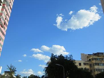 昨日の青空は自慢したかった。一枚目13時頃撮影。二枚目は17時くらいかな。朝の空が真っ青でも、それが一日持続されないのが北京だ。昨日のように午後までずっと青空は私の北京生活二十年で初めて?? え?今日?白空だけど、何か? 假烂的羊肉一块钱。 これ訳さなくていいよね。「假」は偽物。羊肉じゃないってこと。「烂」は腐っているという意味だが、ここでは質が非常に悪いこと。「真」は100%羊肉。 息子続けて、「あ、ママ!これも書いときな。味道都一样」。すごいオチだな。中国の13歳、恐るべし。