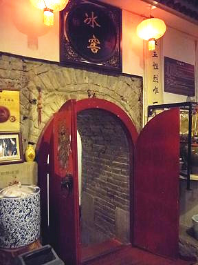 そもそも地下だし、空間が広い。空調が効いていても寒いんじゃないかと思ったが、想像していたよりは寒くなかった。 冬、外が-10度でも中は6度前後。夏、外が37、38度のとき、中は18-20度って。そんなに都合がいいものなのか。 ここの経緯をコピーしておく。出典:http://s.dianping.com/topic/2482759 清朝时整个京城分四处设冰窖18座,工部都水司所辖的18座冰窖统称“官窖”,特供宫廷和官府用冰。“府窖”是特许一些王府自办的冰窖,以供王府用冰。民间则不准擅自经营冰窖。 进入民国时期,官禁取消,北京才陆续出现了很多民营冰窖,北海东侧的恭俭胡同的德顺冰窖等。 雪池冰窖才是正宗的皇家冰窖,到光绪末年(1908年),因国库困顿、经济拮据……于是雪池冰窖形成了半官半私性质。 民国5年(1916年)开始,私人承包冰窖。1925年北海开放为公园后,雪池冰窖由王德山承租。王德山发迹后,在北海东侧的恭俭胡同建筑了两座与雪池冰窖相似的私人冰窖,曾是水产公司仓库,这也成为北京在民国时期留下的惟一的私人冰窖。 (清代には北京に18の氷蔵があったが、すべて宮廷と官府用だった。民国に入り、民間経営が許可され、そのうちの一つが恭俭胡同にある德顺冰窖。1908年、清朝の経済が逼迫し半官半民に、1916年から完全に民間経営となった。1925年、北海が公園として開放された後、王德山が請負った)氷の採取、運搬などについて、中国語で詳しくはここへ→「古代皇家怎么避暑」。この5枚目の写真!私ら行ったときは物置になっていたよ。こういうふうにきれいにすりゃーいいのに。 写真が多いサイトを参考にするとよいかな→「快乐加入盟」。場所を知りたい人、ここにある地図↑へ。「+」をクリックしていくと拡大される。店内の写真を見ると行きたくなるでしょう?