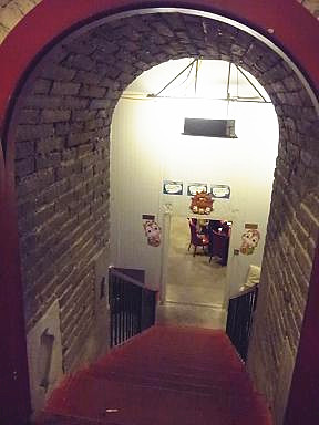 清代皇室への氷を保存していた倉庫を改造したというレストランに連れて行ってもらった。 暗くなってから着いたのだが、外に「レストランどえす」って看板がないし、重く大きなドアは閉ざされ、ガラス窓があるわけでもないので、そこを通るだけでは誰もレストランだとは気づかないであろう。 中に入ると満席。入口のおねえちゃんは「下へどうぞ」って言ってんのに、座っていたおっちゃん(店長?)が「席ないよ」と無愛想。蔵を見るだけでも!と前進。