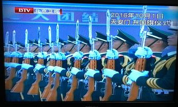 朝テレビをつけたら、2分も国歌が流れ、天安門広場で国旗が挙がる映像が。微信の息子のクラスの先生と父兄のグループは「节日快乐」の嵐。