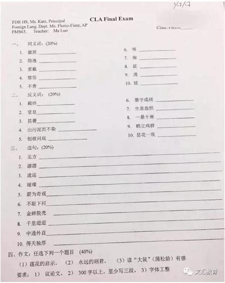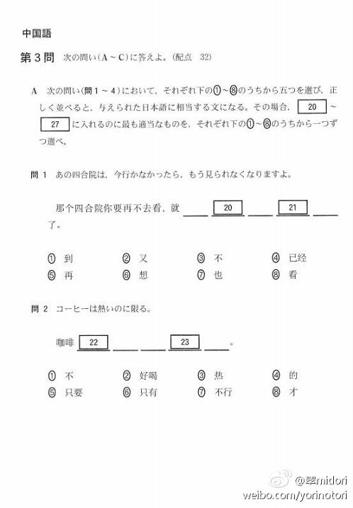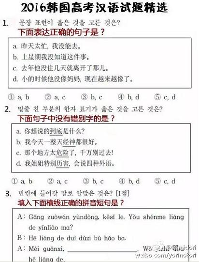 2. こっちは韓国の大学入試の中国語の問題。 3.これ昨日あたりから、微信、微博でかなり出回っているんだけど、ニューヨークの高校の中国語の問題。 ちゃんと見たかったらここへ→纽约高中生的中文试卷,这是士大夫的职称考试吗? 士大夫の試験か?って。ギャハハハハハ。一つ目がいきなり「僦居」。私も初めて見る漢字だが、中国人でも普通は知らないらしい。 |