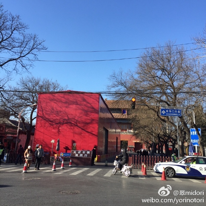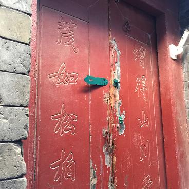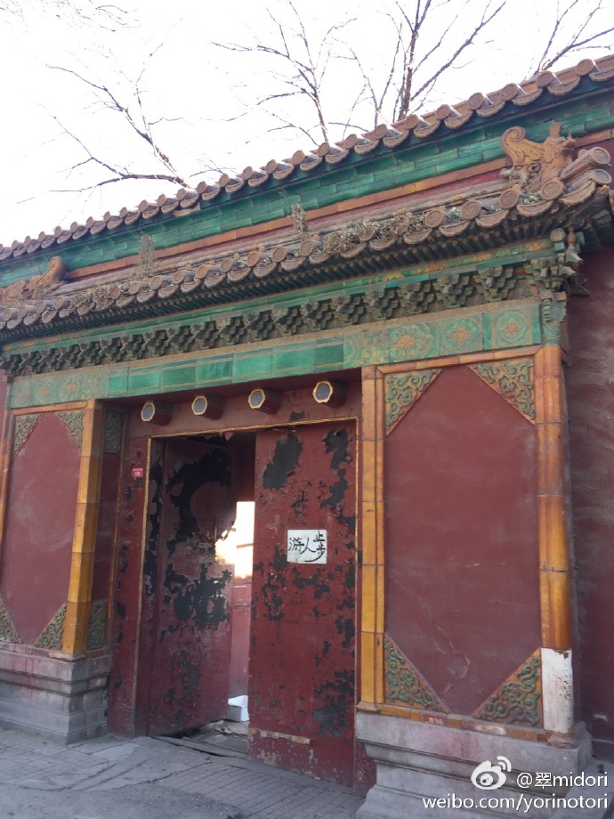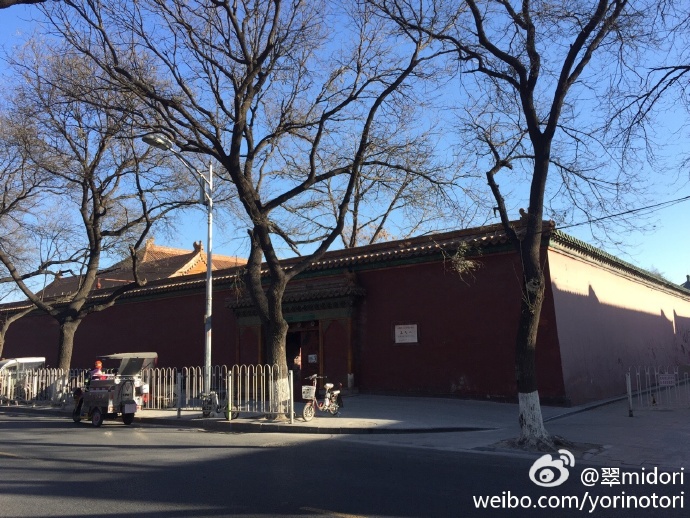 地下鉄天安门东から南池子大街を北へ。通り入ってすぐ左に皇城艺术馆があり、何か展覧会をやっていたら入ろうと思ったが、保安に装修と言われる。 北へ。右に皇史宬。中国明清两代的皇家档案馆,又称表章库,位于北京天安门东边的南池子大街南口。皇史宬始建于明朝嘉靖13年(1534年)7月,建成于明嘉靖15年7月。占地8460平方米,建筑面积3400平方米。是我国现存最完整的皇家档案库,距今已有460多年的历史。 入れない。 どんどん北へ進み、灯笼裤胡同を右に。 前、左と進めば普度寺。突き当たり↓。 こわいよ。オジちゃん! 1. ドルゴン(1612年-1650年)は太祖ヌルハチの第14子。甥にあたる順治帝の摂政となり、清が中華王朝となるにあたって指導力を発揮し、大きな役割を果たした。 2.ドルゴンと重華宮(普度寺) 明代に紫禁城の東華門外に皇城東苑、またの名を南城と呼ばれるところがあり、皇帝や皇族の遊び場のひとつであった。その苑の宮殿を重華宮と呼んだ(普度寺の前身)。1450年の土木の変で失脚した英宗皇帝が一時ここに住んだことで歴史上に名を残している。 清朝の初期、ドルゴンが入城したとき、この重華宮で摂政をしいた。事実上清順治初期の政治の中心地となり、多くの人馬が行き来した。「百の馬車が南城に会す」とまで言われ、当時王侯貴族が頻繁に出入りしていたことがわかる。順治7年12月ドルゴンが病死すると、冤罪に問われ、王府であった重華宮は荒廃していく。 康煕33年(1694年)康煕帝はドルゴンの名誉を回復し、重華宮を改修してマハカラ廟と名づけチベット仏教寺院とした。マハカラとは日本では大黒天であり、チベット仏教では護法大神である。乾隆40年(1775年)更に拡充し、大殿を慈済殿と呼んだことから普度寺と愛称された。 20世紀後半から南池子小学校となり、また住民が住んでいた。2002年、周囲の居住区域も含めて大改修され、普渡寺の復元と保護を行い、2004年から一般に公開されている。 3. 北京普渡寺 色が鮮やかな方が修復されているところ。 外に出る。北へ。このあたりはきれいにしすぎ。新しい感、ハンパない。