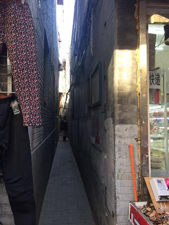 2週間くらい前かな。また行った北京一狭い胡同之一。钱市胡同,早年曾是北京的金融街,在胡同西尽头院里有个大罩棚,那里曾是清代官办的银钱交易大厅。作为全北京最窄的胡同,其平均宽度只有70厘米,而最窄处更是只有40厘米!