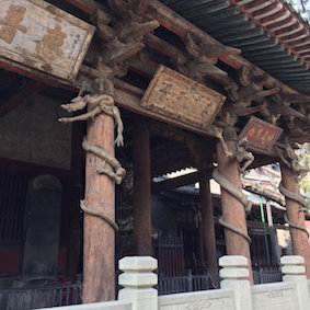 晋祠に入ると、またまたガイドがたくさんいて、「案内しますよ」。うるさいったら、ありゃしない。「あなたは1人だから、30元」と言っていたのが聞こえた。相場は50元なのかな?1人だと安くなるんだ??ああ、そうか。ネットで予約、先払いすると安いのか。 中入ったらね、ガイドが欲しくなるくらい、どっちに行っていいかわからない。予習はちゃんとしておいた方がよかったのかもしれない。でも頼まない。自分のペースで歩きたい。 ここは古い建築物が好きな人にはたまらないスポットだ。きれいに塗り替えられてないのが、とても佳い。 この木は周柏唐槐といって晋祠三絶の一つ。周代の柏と唐代のエンジュ。横に倒れているのが柏。 圣母殿。 ここに龍が巻きついている(木雕盘龙)。 奥へ行くほど高くなっていて、外のガイドが「山の上だよ。遠いよ」なんて言っていた意味がわかった。嘘ついてなかった。 山といっても高くないんだが。どんどん下りて入口に向かうと、出口は別の場所だと知らされる。出る。 土産物屋。春節のときはにぎわったんだろうな。土曜日だったけど、売ってる店が少ない。そして「市内へ帰るぞー」という白タクの呼び込み。一瞬迷ったが、地方で白タクなんて怖すぎるので、無視。 入場料払った晋祠を出て、晋祠公园の出口はここ(出てから振り返ったの図)。私が入ったのはもっとバス停寄りだった。 ここからホテルへ行くわけだが、タクシーで行くことにした。バスが2元なんだから、タクシーも安いはずだ。二台停まっていて、一台目は市内に行かないという。二台目は「メーターを降ろさないで70元だ」。娘が「百度地図で見て55元と書いてある」と言ったら、「それは滴滴车」という。メーターを倒すか、70元かという選択肢で、メーターにしてもらった。15:18発。 乗車中、娘は寝ていたが、私は百度地图をしっかり見ていた。50分以上乗ったけど、あれあれ?遠回りしている。それは私はちゃんと運転手に言った。まさかバレたとは思わなかった?? あともう少しでホテルに着くという道が大工事中。地下鉄つくっているのかな。運転手は至近距離だと道路工事で渋滞だから、遠回りしたのかもしれない。結局73元と、言い値70元より3元高かった。16:10着。 遠回りしたことでよかったのは、大通りを通って、予習時にチェックしていたレストランの位置が確認できたこと。よさげなカフェが近くにあるとわかったことだ。 ホテルへ。 <続く> 追:はっきり写っている写真はあっちへ。この忍者ブログの写真はもう94%の容量を使っているので、その後どうするか考えるとともに、ここには大きいのを貼らない。 |