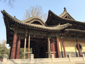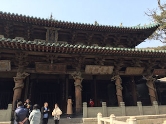 晋祠は周の武王の次男唐叔虞を祀るため、北魏代(386年)に創建された。その後もしばしば修理が行われ、北宋代に唐叔虞の母である邑姜を祀るために聖母殿が建立された。(旅悟空より) 太原南駅で11時半から並び、路線バス(79路)に乗って(12:06発)、終点から一つ手前の「晋祠公园」で降りる(13:16着)。1時間10分かかった。タクシーなら30分のはず。バスから降りたのはみな晋祠へ行く観光客。バス降りて、初めに降りた人が行く方へみんな進むが、逆方向だったらしい。 バス停にはガイドがたくさんいて、「案内しますよー」とうるさい。「ここから30分歩くんだよ。道案内が必要だ」と言う人もいて、何を信用していいかわからない。私はとにかくご飯を食べたく、地図で晋祠の目の前にたくさん食堂があることはチェックしていた。 「食事はうちにおいで」と案内しているオバちゃんが私らに寄ってくる。私がその人に付いて行こうとすると、娘が「え?信用していいの?」と。「大丈夫でしょ。店見て決めよう」と私。オバちゃんが「刀削面があるよ」と言うから、値段を聞いたら、8元。ならば、大丈夫か。もし大通り沿いでなく、裏道の方に入っていたら怪しいけど、案内されたのはここ。 晋祠农家乐饭店。「ほかはみんな休みだからね」と言ってたが、まわりちゃんと営業してた。針千本飲ますぞ、ごるあ。 山西省といえば刀削面なので、刀削面(小)8元と、適当に炒莜面25元を頼んだ。炒莜面は辛くて、塩気は少なく、絶妙ないい味だった。お腹がそんなに減っていなかったので、2人でこれ二つ。野菜不足だ。 私らが最初の客だったが、そのあと二組やってきた。おばちゃん、客引きうまいな。男子三人はご飯に炒め物をたくさん頼んでいた。人数多かったら、たくさん頼んでみたかった。 ここは上で宿を経営していて、一階の入口にトイレがあったので入ったら、地獄。和式便器は白い陶器なんだが、茶色に染まっている。汚物が残っているのではなく、ゴシゴシきれいにすればいい話なのに、してない。まあ、トイレ、あるだけ有難いと思え自分。 食後、道路を渡って、向かいの晋祠へ。駱駝に乗せてお金とるやつでしょ。観光地感満載。ここを直進。 ここが入口?中に人がいて、聞くと、「ここから入れ」と言う。その割に観光客がいない。 おお!公園という感じがするも、人がいない。 どんどん進むと、観光地っぽくなってきた。 中に入ってからわかったのだが、手前が晋祠公园で、奥が晋祠(晋祠博物馆とも)。公園は無料で、池もあるし、近所なら散歩に最適。 太原という都市ができて2500年を記念して、2003年に造った、ごっつい銅像。真ん中は李世民。下のおっさんじゃなくて!(当たり前だ) どんどん前進すると、晋祠に。 入場料65元を払って、ここから中に入る。 <続く> |