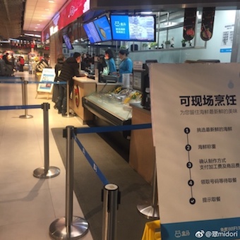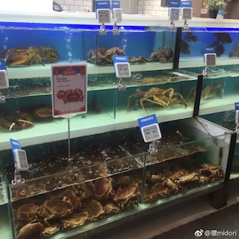 盒马鲜生へ行った。十里堡のヨーカ堂があったところの地下一階。午後4時だったかな。ウリだと言われている海鮮のところに十人は並んでいる。いろいろな食品が売っていて楽しそうなんだけど、どうやって買っていいかわからない。夕方だし、これからどんどん混むなあと思って、何も買わずに去った。 数日後、友人二人とお昼を食べに行った。「せっかくだから海鮮食べようよ」と言ってくれたので、物色。 カニの種類が多い。エビは種類が少なくて、ロブスターも売っていたが、無難な車エビにした。水槽に入っているのは店の人が網ですくってくれて、それ以外は自分でビニール袋に入れる。 貝の種類がいろいろあって、普段なかなか食べないし、二種類選んだ。すぐそばで量ってもらって、レジへ。 調理方法が選べて、白灼,清蒸、盐椒炒、香辣炒、姜葱炒だったかな。すべての調理方法から選べるのではなく、たとえば貝は炒めるのしかダメ。 厄瓜多尔白虾/エクアドル・クルマエビ,黄金贝/なんかの貝,蛏子/マテ貝) 調理代入れて131元。このほかに手工宽粉16元,羊杂四棱38元を別のところで頼んだ。 レストランだとこの値段では食べられないだろう。そして、家にソーセージ、紫芋を買った。店内は寿司、餃子も売っている。また是非行ってみたい。 アリババが出資しているので、支払いは微信不可で、支付宝。支付宝があるだけではダメで、ここのアプリをダウンロードしないと買い物できない。現金は一切ダメ。進みすぎていて、日本にいる日本人には理解不能であろう。 アリババがこんなことを展開するので負けてられない京东が、昨年末に同じような形態のスーパーをオープンさせた。その名も7FRESH。場所は亦庄。写真はここから。亦庄って、京东本部があるところじゃないか。 今いろいろ調べてて知ったんだけど、京东在亦庄建人民大学附小、附中、幼儿园。人民大学付属高校は超進学校だからね。成功している中国の金持ちは手広いなー。 あと、今日読んだ記事なんだけど、要不是买海鲜,盒马鲜生真的没必要去! 海鮮を買わないのなら、盒马鲜生へ行く必要なしと書いている。つまり海鮮はいいってことだよね。これ開いて見てよ。果物の値段比べがあって、チラシをつぶさに見る主婦かっての。いとをかし。 この記事は昨夏のもので、オープンしたばかりの時は海鮮できるまでに90分待ったらしい。土日は今でも混むのかな? 7FRESH、誰か一緒に行こうよ。 |