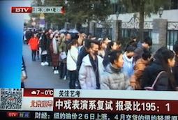 小学生のときから「美大に行く。漫画家になる。パパみたいな画家は嫌なの」と言っていた息子だが、ダンナは絵を習わせなかった。中学に入って、年に二回の大きな休み、春節と夏休みのときだけは泊まりで美大予備校に在籍した。普段週末に絵を習わせなくていいのか私が聞くと、「まずは学校の勉強が大事だ」と答えられた。絵ってそれこそ小学生くらいから地道にコツコツ描いて上達していくものではないのかと不思議だった。 今うちの息子は高三なのに、高校に行かないで、美大予備校に合宿状態。週休一日で、それ以外は朝から晩まで絵を描く。ずっとずっとずっーーーーー絵を描いている。詳細は別のブログへ(これはいつか非公開にする)。日本の美大生、こんなに絵を練習しないよ。私の同級生が東京の美大を出たんだけど、この話をしたら「日本は美大予備校高いから、毎日なんて無理」。 これは微博に登録していないと開けないかもしれないが、「美大を受ける子は成績が悪い子だ」という記事。 美术生=成绩差?你说对吗? 成績が悪いから、高考を受けても大して点がとれない。美大は高考の点数が低くても絵が上手なら入れるという認識のもと、高三のときに美大予備校で毎日ばっちり練習して、美術系を受ける子がいるという内容だ。 全国に美大だけじゃなくて、総合大学の芸術系やら、設計なんとか学部等、いろいろあって、レベルの高くない学校もあるから、頑張ればその方法で大学に入れる子がいるのも事実だろう。 うちは小さい時から「学校の勉強をしっかりやって、絵も一生懸命学んで」なので、「勉強できないから美術に進む」という考え方にはいささかビックリした。 で、美大入試は今まさにシーズン。それは志望する大学に個々に受けに行く。テレビも毎日のようにニュースでやっている。俳優、アナウンサーになりたい子も同じ「艺考」という括り。 俳優になりたい子が受ける中央戏剧学院は倍率が195倍。 中国で美大の最高学府は北京にある中央美术学院 。中国で美大といえばここと杭州にある中国美术学院。ニュースの動画(2分)見てよ。中国美术学院 7.8万人报考。8万人近くが受験して、受かるのは1600人。ダンナに聞いたら、南方の子は北京に行きたがらないから、ここの大学は受験数が多い。あと、杭州より北京のほうがレベルが高いというのもある。確かに日本人が誰でも東大を目指すわけじゃない。 うちはね。あと1校。頑張っておくれ、息子! |