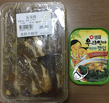 私が買ったのは五花肉(28.4元)、泉牌苏子叶罐头(15元)。この缶詰はエゴマの漬物で友人のお勧め。勧められないと気がつかない。だから誰かと行くと発見があって楽しい。 会計しているときにレジにこの魚が特売だと写真が貼ってあって、また戻り、買った特价三条鱼(三袋88元)。一袋だと40元で、3種違うのを買えば88元。 ここから駅とは反対の方へ行き、数分歩くと、江戸前寿司のあるビル(新荟城购物中心)があり、その一階にきれいなスーパー果蔬好(大众点评)がある。 昼はお弁当を買いに来る会社員が並ぶらしい。肉も充実しているが、小魚、キムチもいろいろあって、これらを購入。日式烧肉梅花片(20.97元),辣白菜(6.89元),小青鱼(10.07元)。。 来故乡超市の方に戻る途中に一脉超市(大众点评)がある。青い看板に白字。ここで肉を買った人が強烈に勧めるので行ってみた。行って気づいた。私、ずいぶん前に来たことあるわ。 肉は確かに充実。魚、野菜もある。 ここを出て、Q-Mart(大众点评)へ。 キムチはいたるところで売っているが、私はここのが一番美味しいと思う。味が深い。本日の購入品。 辣白菜(12.2元),炒凤尾鱼(特价10元)。あと適当にお菓子二つ。 <続く> |