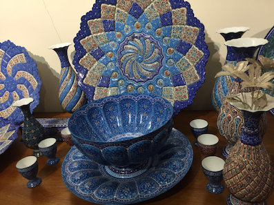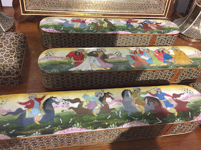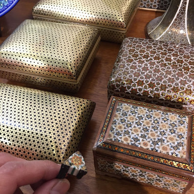 中に入って、身分証を見せて(私はパスポートのコピーを出したが、それは見ず)スキャンするか、手書きで氏名、身分証明書の番号(パスポート番号)、携帯番号を書いて、入場カードをもらう。無料。 行くのは地下。ここに芸術品や工芸品を売るお店が並んでいる。友人に案内されたのは「波斯珍宝」(PERSIAN TRESURE)。 予習としてこれを読んで行った。“波斯仙境”设计者愿做中伊文化使者 イラン人の双子がイラン文化を中国で広めようと頑張っている。今日はお兄さんのほうの中国名、吉利さんにお店に来てもらった(常駐していない)。 嵌め木細工、寄木細工は木でできているが、この材料はいろいろで、中国語だと骨木金镶嵌工艺。 画珐琅 ホーローの上に絵を描いている。 いかにもペルシャといったアクセサリー。 鍵。すごーーく凝っている。 テーブルクロス。すべて手作業で色を重ねて染めていく。中国でいうと、荣宝斋の水印のよう。 天平(天秤とも)。 砝码(fǎ mǎ)。 絨毯。 制作工程のビデオが流れていて、説明を聞きながら見た。日本にいても、こういう工芸に触れる機会がないので、貴重な体験だった。 中国のテレビにも出ていて、そのビデオも見たのだが、ネットでその番組は探せなかった。見つけたのはこれ→My Chinese Life 我在中国 第36集 波斯使者。 このお店を出てからに続く。 |