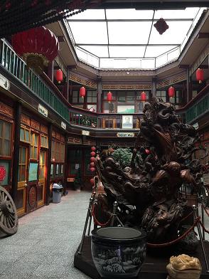 招牌红烧肉饭,南洋咖喱饭。各46元。 食後北上。すぐに白酒の博物館「中国第一瓶二锅头酒诞生地(源升号)」がある。 看板は康熙帝が書いている。あ、これ蝋人形だから(当たり前だ)。 二階は「体验馆」と書いてあるのだが、初めて上がってみた。 上がって北は展示。歴史から模型から、全国の白酒も大集合。酒好きにはたまらない空間だ。 もっとたまらないのは南側の無料試飲室。私はお酒は甘酒しか飲まない赤ちゃんなので(赤ちゃんはそれさえも飲まないっての)、見るだけ。匂いが強くて、それだけで酔いそうな赤ちゃん(しつこい?)。 この中国にあって、タダってどうなのか。罠がないか真面目に用心しちゃうよな。でも、ここは大丈夫。っていうか、こんな度の強い酒を浴びるほど飲むアホもそうそういないだろう。 さらに北上して、北京一狭い胡同。私、今年10回以上行っている。毎回違う人を連れて。 钱市胡同传统银钱业博物馆保护利用工程项目建设と書いてある。恐ろしいな。博物館建設は春から報道されていたけど。 鍵をかけられちゃって、「鍵欲しけりゃ居委会まで来い」と。すごいな。 清代官办银钱交易大厅 大栅栏を西へ。 大栅栏商业文化老街。 この中に东来顺や新成炸酱面馆が入っていた。东来顺はテイクアウトもあった。 バス通りを越えて西へ。今年は何回この辺りに行ったかわからない。毎回違う人を案内している。 ここでいつか食べてみたい。天海餐厅(大栅栏店)。 向かいに京华客栈。昔の宿。 横のガラスの飾りが美しい。 さらに西へ進み、朱家胡同をちょっと南に入ると、Berry Beans。大众点评。 テラスがあり、上がる。狭くて全体を撮れない!もっと座るところはある。 眺め。 私、実は急いでいたので、何も飲まずに出てくる。見学のみ。 <続く> |
