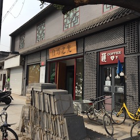 白塔寺を出て、お茶でもしようと思ったら、すぐに咖啡の文字が見える。