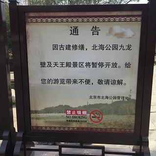 北海公園の北門まで300mくらい東に歩く。チケット売り場が長蛇の列。連休に観光地なんて行くもんじゃない。でももう来ちゃったし。おじさんが「もっと前に進むと北門があるよ」。そこは西北門だった。さらに150mくらい歩いて、切符を買う。10元と20元がある。迷わず安い方を買う貧乏人。ここもヒト多かったけど、ちょっと並んで、敷地に入る。 北側なんて20年ぶり?いつも南から入り南の一帯しか行かなかったし。今回の二つ目の目的地「九龍壁」はおまいらには見せないよって書いてある。 中国の不親切なところはいつまでと書いてないところだ。 一つ目の目的地へまっしぐら。 途中、え?郵便局?と思って入る。 赤いボックスには七夕、端午節等と書いてあって、その日に着くように手紙を送れるのかな。 そして、見たいところにやってきた。 閲古楼。 乾隆十二年(1747年),乾隆帝诏令将内府所藏魏晋至明末历代书法家计134人的340件书法手迹,汇成《三希堂石渠宝籍法帖》,並摹刻上石,共刻石495方。 魏晋から明末までの書作品が彫られている。ここに行くツアーを実施するのに予習しようと思って、わざわざ出向いた。ここに作品すべてが収蔵されている本が売っているのだが、ビニ本で中が見られない。中身が見たいが、見せてもらえない。重い本二冊なので、やめた。写真をガンガン撮って、それでいいや。ここの作品については後日。 南門から出て、コーヒーを飲むのをどこにしたらいいか迷う。とりあえず東へ。中国美術館を通ったので、降りて、向かいの美術用品店で洋紙を買う。 そこから歩いて東四まで行き、南下して、カフェに入る。 意咖多(大众点评) 礼士胡同は何回も通っていて、入ってみたいと思っていた。 冰拿铁38元。今知ったが、老板はコーヒー入れるコンテストなんかに出るようなヒトだった。2015世界手冲大赛(動画13分)。 南下。ウロウロ。 |