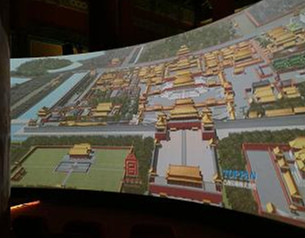 故宫端门数字馆の中で、まずは15分のスクリーン「虚拟现实剧场」を見た。年寄りにはキツイ。3Dではないけど、映画『アバター』を見たときのように気持ち悪くなった。「アナタの座る椅子が動いてます」感とか要らないから!静かに余生を送りたい。