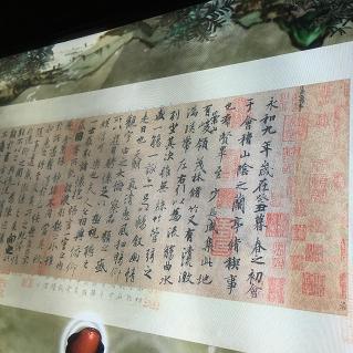 私以外は、始まって5分くらいしてやってきたカップルのみ。客はこれだけ。見終わって、左右どちらからも出られるし、ヒトも3人しかいないのに、「こちらから出てください」。引き続き、ばっちり誘導する館員がいる。 次は蘭亭序のところに連行される。このブログで誇張なしで100万回以上言っているが、中国歴代書家の中で一番有名な書家は王羲之、作品で一番有名なのは蘭亭序。いろいろなバージョンがあって、うちいくつかを北京故宮が収蔵している。ここは蘭亭序の字を電子ペンで書いて、画面に映し出し、作品の中にアナタの字が入ってますよと遊べるコーナーだ。 これ↓画面換わっちゃっているけど、ここに拡大した四字が出てきたので、それを電子ペンでなぞった。 私が「確認」をタッチすると、ブブー。入力されない。私のボディーガードのようにぴったり付いている館員が「もう一回」と二字に換える。うねりも意識して、達筆と思われる字を書く。「確認」。ブブー。一字に換える。 私:什么意思? 館員:你写得不好 ぶっとばすよ。 私を誰だと思ってんの?このやりとりは二回あった。私が下手なはずがない。蘭亭序なんて筆で何万回書いたと思ってんの?となりのカップルはすぐにクリア。おかしいでしょ!もしかして中国書法家協会主席とご夫人? 結局、三度目の正直の「随」という字でクリアした。「顔写真撮ります」。え?要らないけど……。カチャ。あ、事務所通さないで、顔撮られちゃった。 私の顔が故宮に残されるぅ~。あと7人くらい来るまで。 次に進む。次の館員にバトンタッチ。花鳥画のところへ連行。鳥の絵があって、そこをタッチすると、その触れた部分だけ、写真になったり、餌があるので、それを嘴まで画面でタッチして、与えるという、あってもなくてもいいような内容。 <続く> |