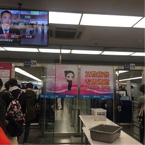 北京空港。ダンナが送ってくれないので、自力で行く。三元橋から空港行きの電車に乗る。第三ターミナルまで15分。第二まで30分。第二で降りて、安全検査は女性専用があった。