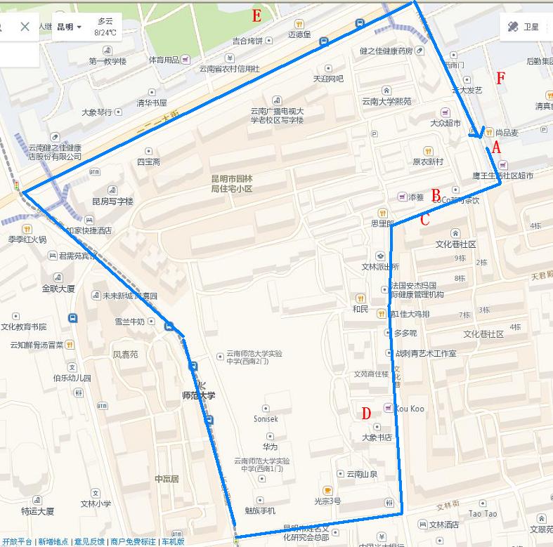 飛行機に乗ること3時間半。東京に帰れるほど遠い。 雲南大学の中のホテル「云南宾馆」に直行。ホテルのある通りは「文化巷」と呼ばれる賑やかな通り。予習してあって、行きたいと思ってたんだ。 因沈从文老人、冰心老人、李公朴先生……一代文豪,经常坐在文化巷里某个小茶馆里,谈笑风生。 ↑ここに3人あがっているけど、著名な作家。この人達が茶館で談笑していたので、道の名前に「文化」がついた。 夜ちょっと散歩して、朝も散歩。 朝、店はほぼ閉まっていたが。 メニューには普洱茶が書いてあったが、座っている人は麺みたいなのを食べていた。あ、米粉か? ホテル(市内)から車で1時間で、雲南師範大学に到着。準備して、お昼食べて、午後2回講義(内容については昨日書いた)。 晩ご飯食べて、また車で1時間かけてホテルへ。部屋に戻り、教材等を置いて、一人で夜の散歩。 見てわかるかな?店のドアがない。開けっ放し。これ一番寒い時期もそうなんだって。商店も食堂も。閉店時はシャッター。 漫林书苑(大众点评)ハガキ、地図、文房具も売っている本屋。 どんどん前進。 横浜系ラーメン屋。 カフェ。ソファー席がなく、入らなかった。すぐ横の地下に本屋あり。 建设路。 一二一大街。雲南師範大学(古い方のキャンパス)。 文化巷に戻る。 カフェが結構あるし、本当はコーヒーを飲もうと思ったが、なんとなくホテルに戻ってしまった。となりのスーパーで雲南産のインスタントコーヒーを買って、部屋で飲んだ。 これって香港にあるって聞いたことがあるんだけど、コーヒーと紅茶が混ざっている飲み物。私が買ったインスタントコーヒーは紙コップの中に二袋あって、二回分飲めるかと思ったら、一つはコーヒーで、一つは紅茶だった。果たして両方の味がした。 <翌日の観光に続く> 地図(クリックして拡大可)。 A. 云大宾馆 B. 和民(日本料理) C. 漫林书苑 D. DEMO CAFE,大象书店 E. 云南师范大学 F. 云南大学 |