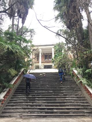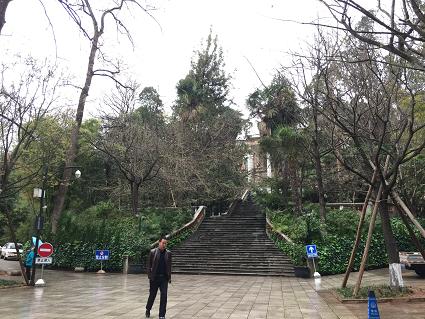 进入校园 请注意您的言行举止 こういうの、北京の大学で見たことないな。 ↓これを撮っていると、通りがかりの人が「これは古いよ。60年前の建物だから。ソ連人が建てたんだよ」と教えてくれた。 専門的なカメラを持って、撮っている人もいた。絵になる。 1955年に建てられた钟楼。一見「桜」に見えるのは「海棠」。 东号舍。贡院(科挙の試験場)だった。 散歩が終わり、この日は一日観光。師範大学の先生が案内してくれることになっていた。ホテルのロビーに行く。先生来る。 先生:雲南大学の中は見ましたか 私:今、散歩してきました 先生:長い階段のところまで行きましたか? 私:え?長い階段??行ってない そして一番奥まで行くと、あった。長い階段。 そして正門から出る。 <市内観光に続く> |