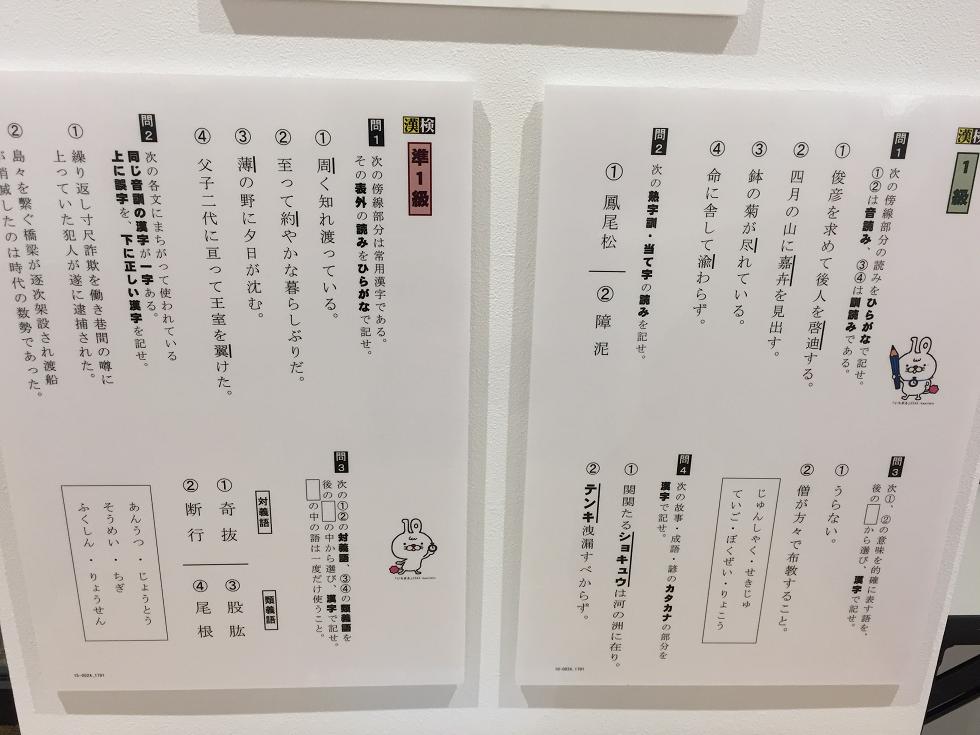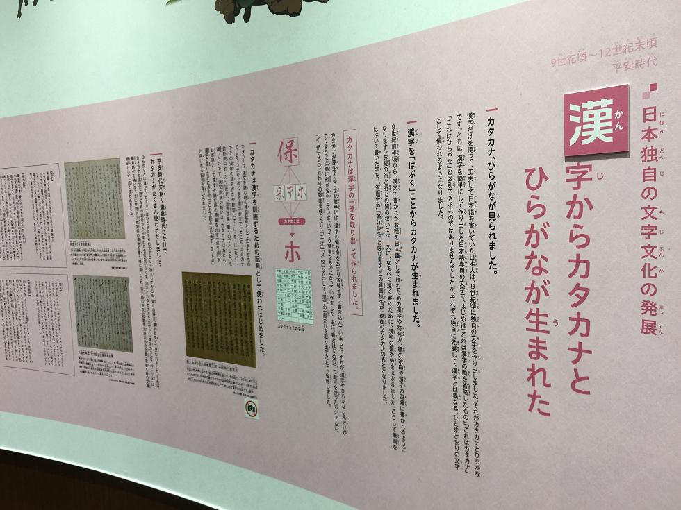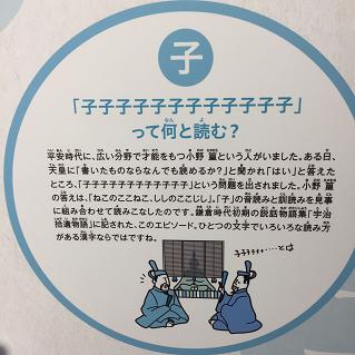 中国に住む日本人は「しゅんせつ」の漢字変換で「浚渫」が出てきたことが絶対あるはずだ。だから読めるに違いない。 春節に子どもと3人で一時帰国して、京都へ行った。国際マンガミュージアムへ行こうと思っていたが、臨時休館だった。残念無念。あと私が行きたいと思った漢字博物館は、行った祇園の、たまたま近くだったので、入った。 券買って入ると、いきなり本物の「今年の漢字」by清水寺の森貫主。これよく「上手なんですか?」って聞かれるけど、これは上手い思う。太さが同じで、いかにもお坊さんの字だ。 京都在住の書家による「いろは歌」。字を書いて、それを彫って、色を着ける「刻字」というジャンル。 10分くらいのビデオを見られるスペースがあって、漢字の成り立ち等、子どもでもよくわかるようにできている。 入場券と別に用紙を渡されるのだが、いろいろ体験できるようになっている。 体験1:古い書体「甲骨文字」が印刷されていて、備え付けの道具でこすると、なんていう字かと、占いが出てくる。娘のと違ったので、何種類かあるんだろう。 壁には漢字の歴史。王羲之、蘭亭序は抜かせない。 ※↑クリックして拡大可。 体験2:自分の名前の万葉仮名を作ろう。 まずは自分の名前をひらがなで書く。その横にそのひらがなのハンコを押すと、押された字が万葉仮名になっている。残念なのは筆で書いたような時ではなく、思いっきり活字の楷書だったことだ。でも、そうじゃないと一般ピープルが読めないからだろうけど。違和感ありあり。 「漢字からひらがな、カタカナが生まれた」。正に私が北京で講義してきた内容。 ※↑クリックして拡大可。 1階から2階まで、漢字タワーという柱があって、漢字が5万字書いてある。 漢字は5万字とも8万字とも言われているが(この博物館のビデオで言ってた)、日本の常用漢字は2136字。つまり日本人は2136字知っていれば、新聞は読めるし、日常生活は困らない。難読解字や地名に使われる特殊な字を知っていたところで、5000字も知っている人はそうそういないだろう。それが5万よ。1/10も分からない。それ文字化け?徐冰の作品?と聞きたくなるような字ばかりだ。 2階へ上がる。「漢字を作りましょう」と用紙が置いてあって、漢字を自由に作って、フックにかける。読み物もいろいろあった。 2時間くらいいたんだけど、寿司のところで遊ぶ時間なかったよ。 2階から下りようかと思ったら、漢字検定クイズがあるのが見える。「これやるか」。娘と級を違えて挑戦。私は国語の教員免許あるし、書道を教えるような人だ。日本人の平均よりはずっと漢字は読めるはず。1級へGO。 ※↑クリックして拡大可なので、かならず拡大して、問題を解くように。 1級難しすぎるでしょ。これできなくていい。読めなくても、日常生活まったく困らない。準1級も難しい。解答用紙に書き込み、受付のおねーさんに渡すと、答え合わせをしてくれて、成績に関わらず、漢字のバッチをくれる。2級は合格だったよ(当たり前でしょ)。 息子は宿題をやると言い、博物館内のカフェにいた。私と娘も坐る。 ココアとスープで休憩。漢検ジャーナルという刊行物、タダでもらえる。漢字検定の模擬問題も載っていて、夢中になってやってしまった。「これからどこ行こう?」とガイドブックを見て、近い建仁寺へ行くことにした。え?あと10分で閉まる。小走りに向かう。 <京都ネタ続く> |